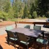 This is a 10 person two story cabin. The cabin has three bedrooms with king beds, and one bedroom with two queen beds. Three bathrooms. It has a full kitchen, living room, electric fireplace, air conditioning and a beautiful view of the foothills of the Cascades. (Pool towels not included)