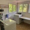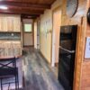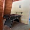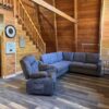 This Mountain Home is located east of Camp Yale behind a private gate. It sleeps 6 – (max 8) one master bedroom downstairs and upstairs bedroom has 2 queen beds and located upstairs is a game room which includes a foosball game. Open living room with electric fireplace, big screen TV. Kitchen is fully equipped and has a breakfast bar that seats 4 along with a dinner table that seats 4. Laundry room with washer and dryer and a cute full bathroom.