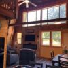 This is a 6 person two story cabin. The cabin has two bedrooms with one queen bed upstairs and one king bed downstairs. Also, there is a loft with a king bed on the second level. It has a full kitchen, living room, electric fireplace, air conditioning and a beautiful view of the foothills of the Cascades. Two bathrooms. (Pool towels not included)